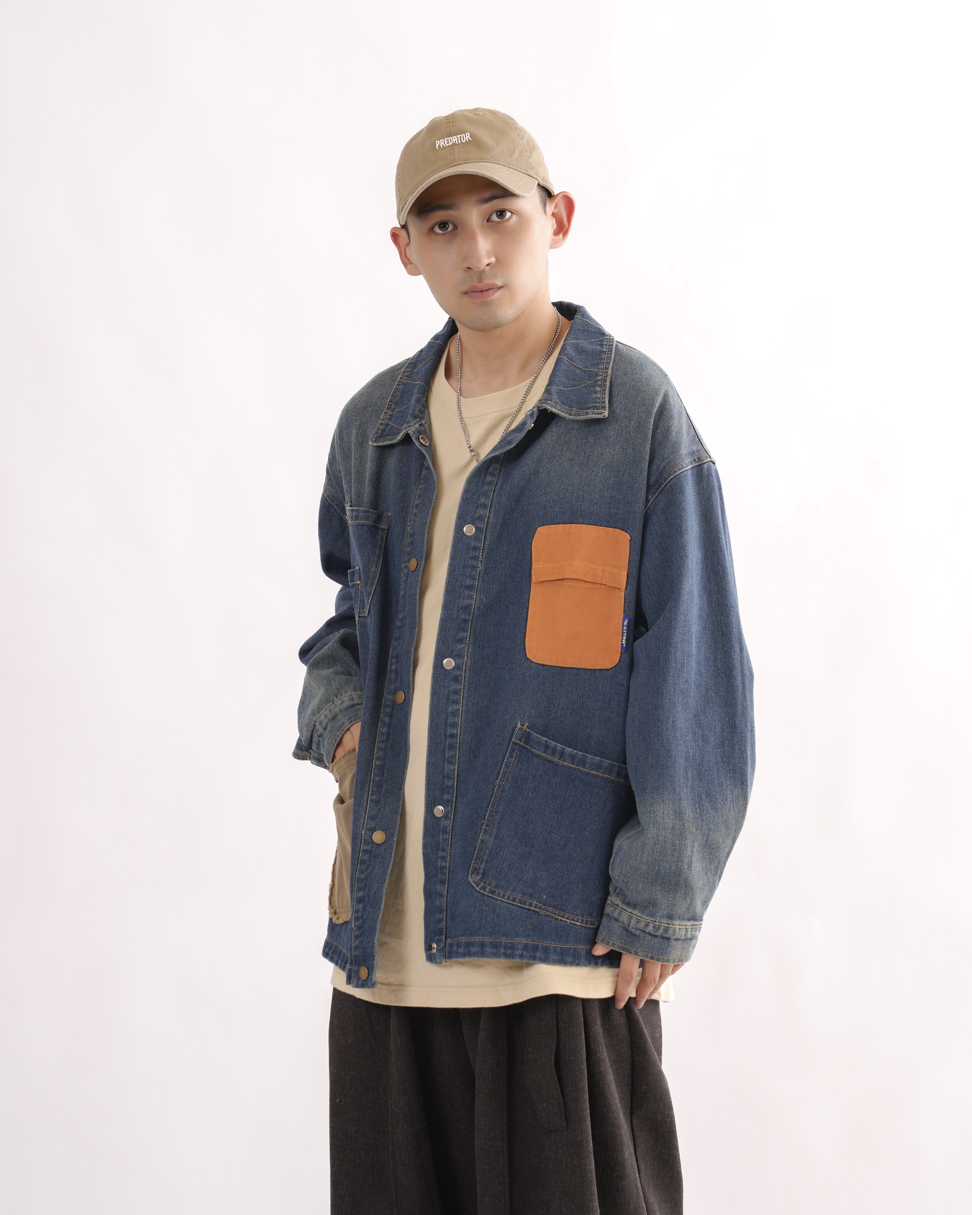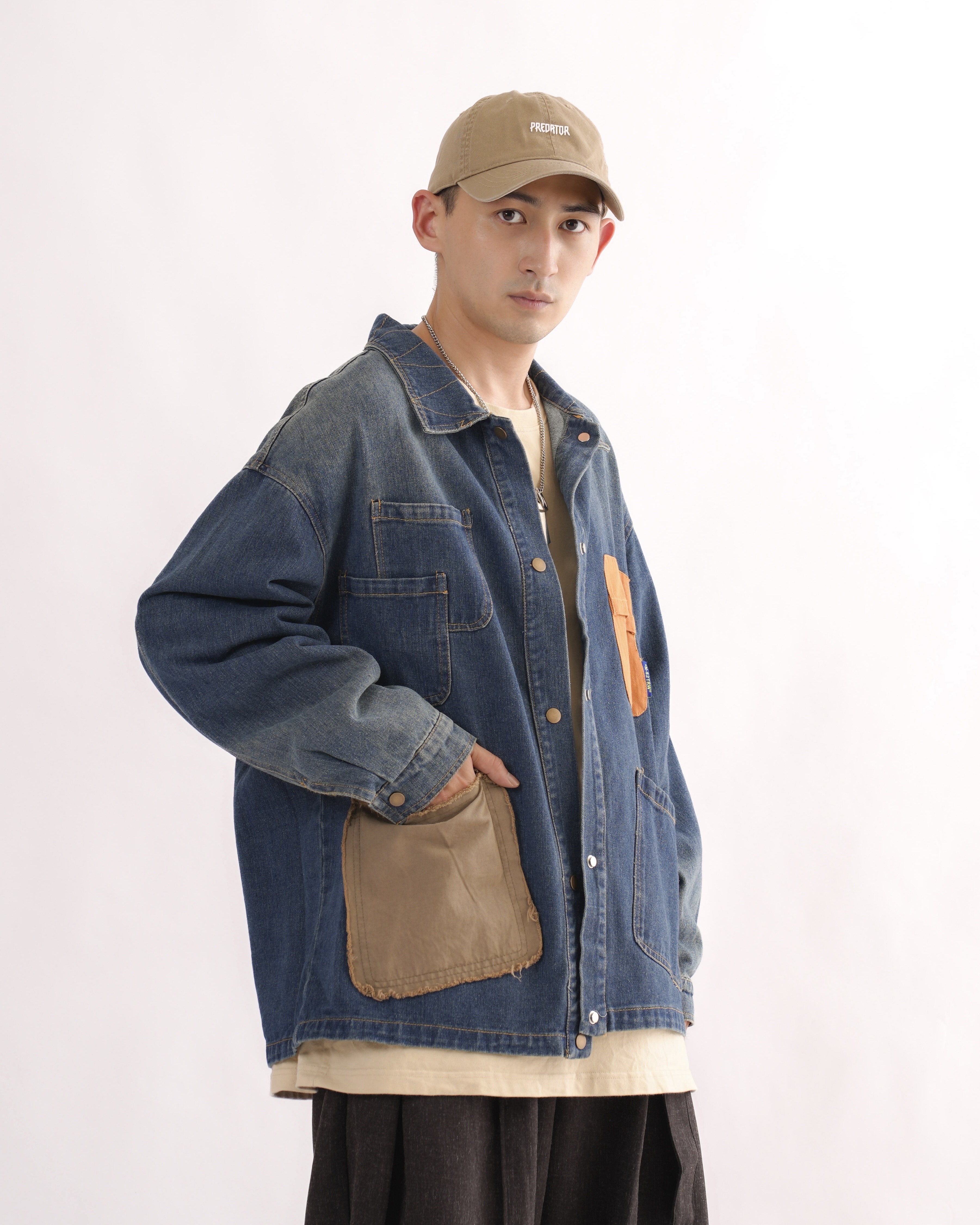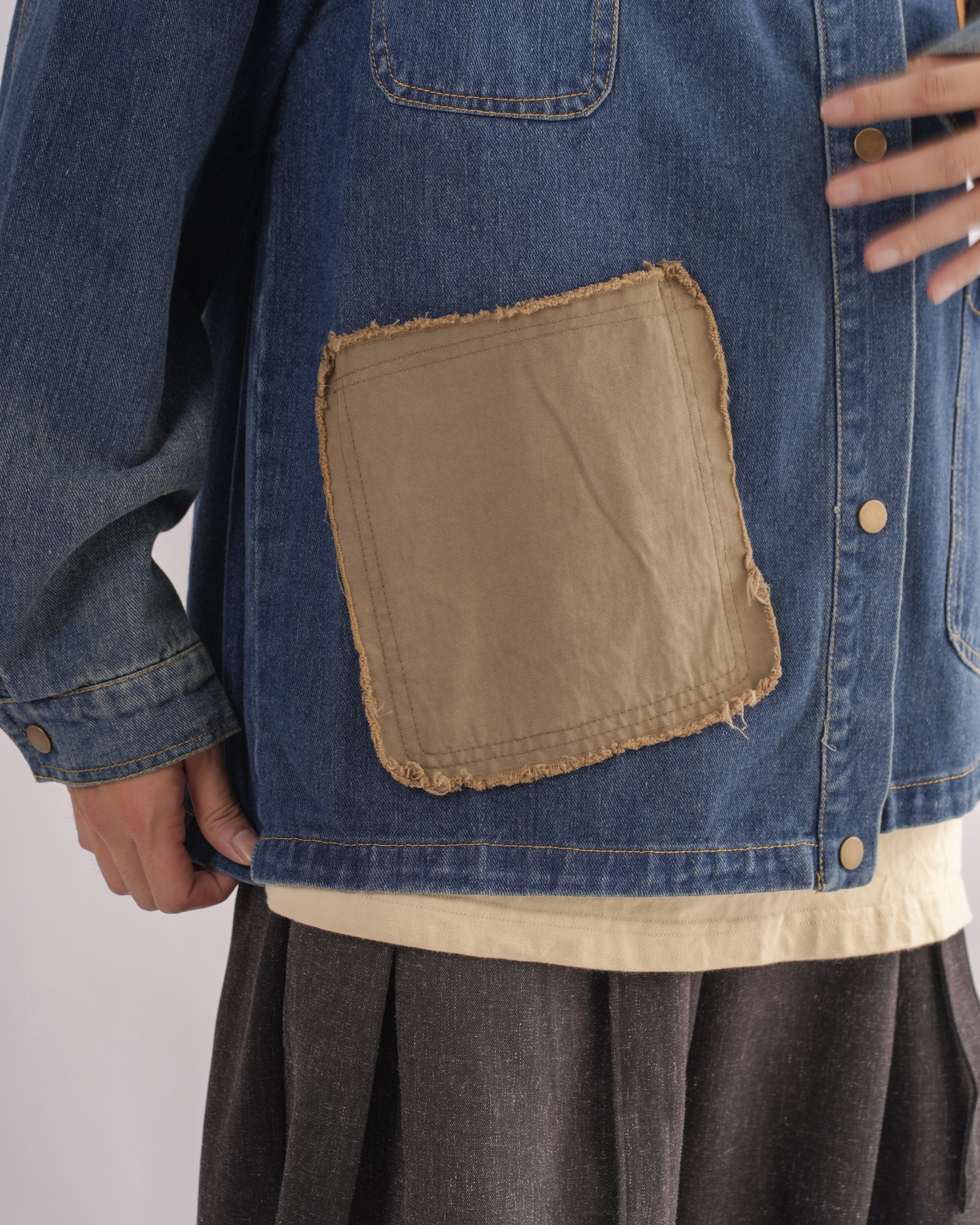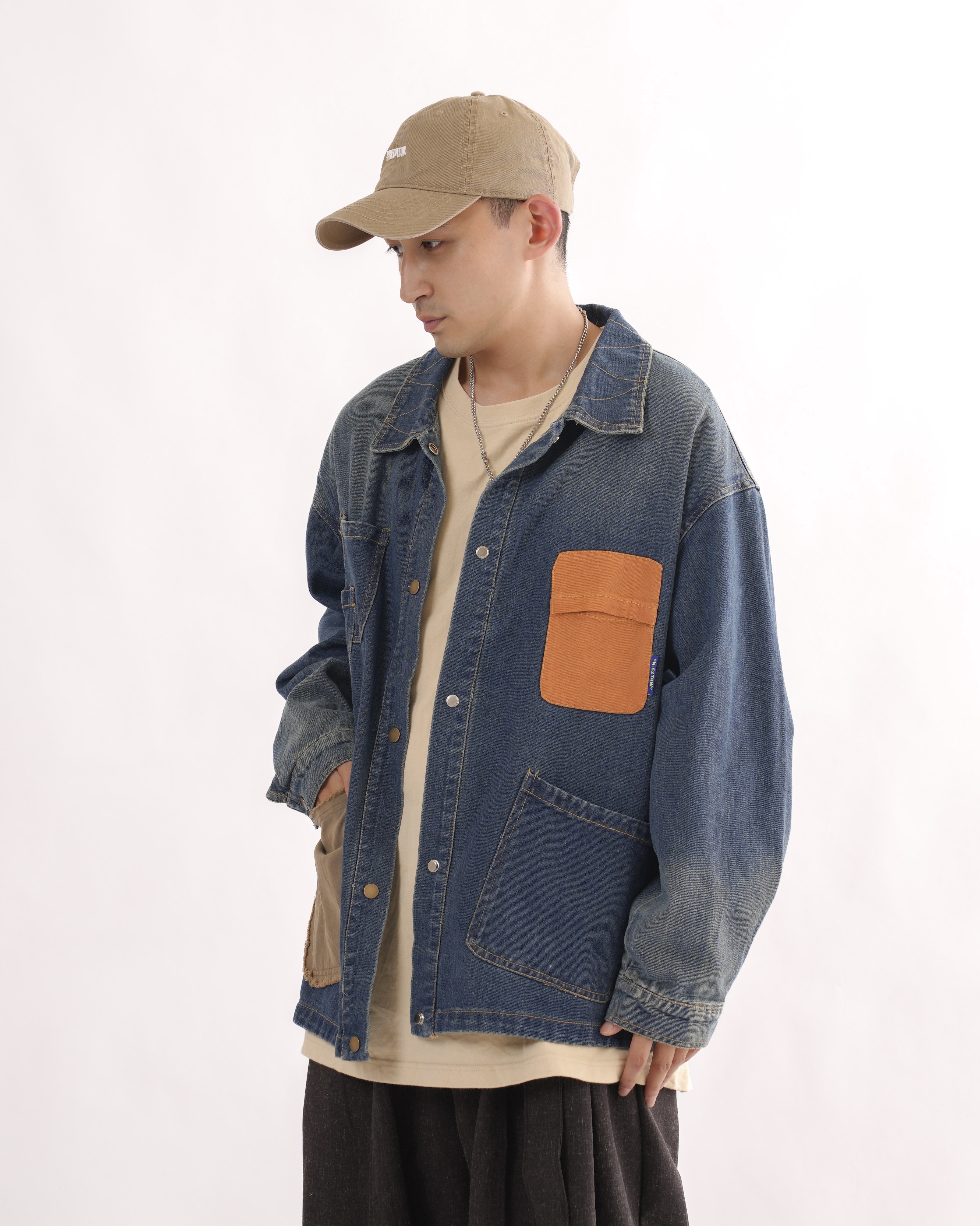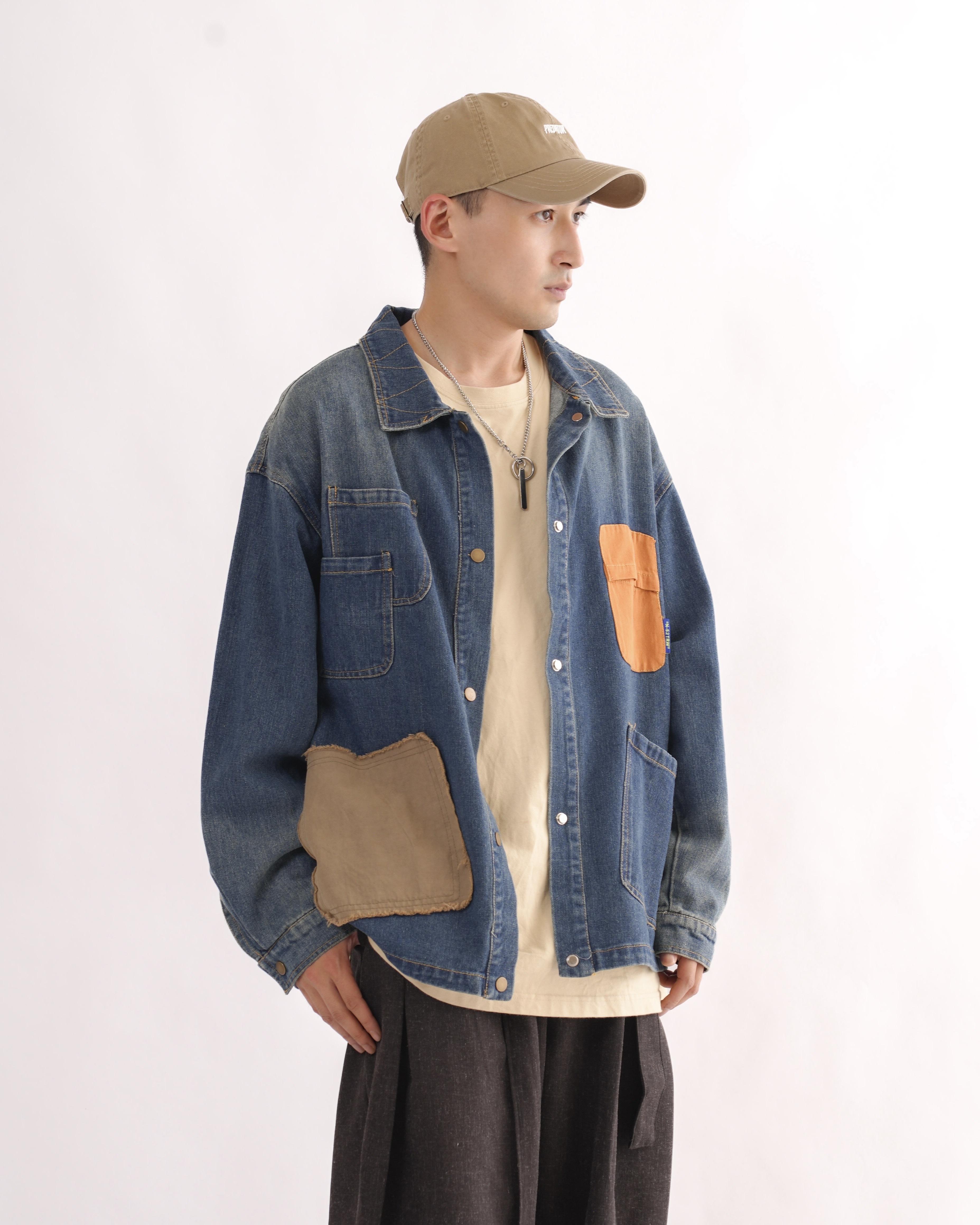 MK021 補丁感拼色水洗牛仔外套