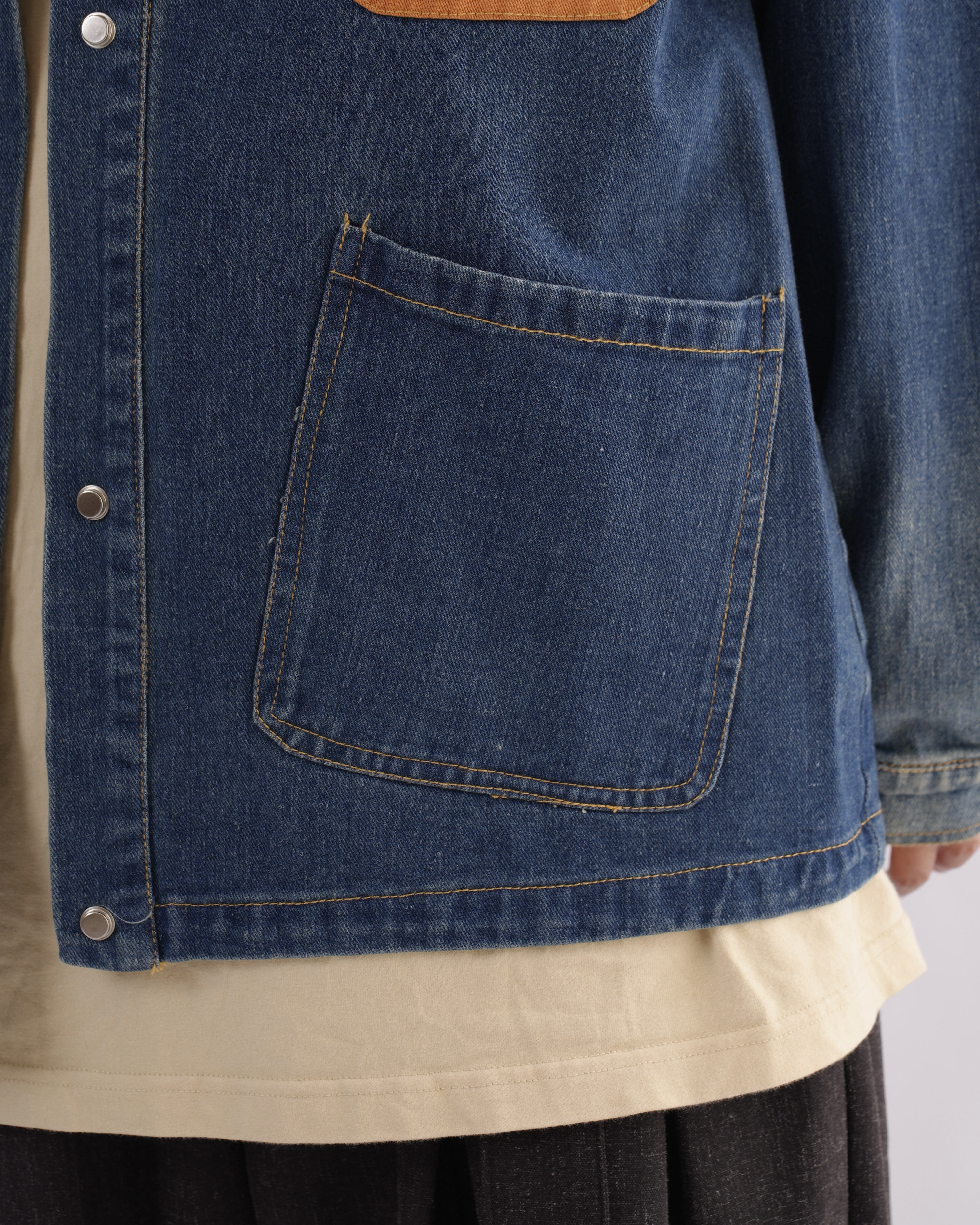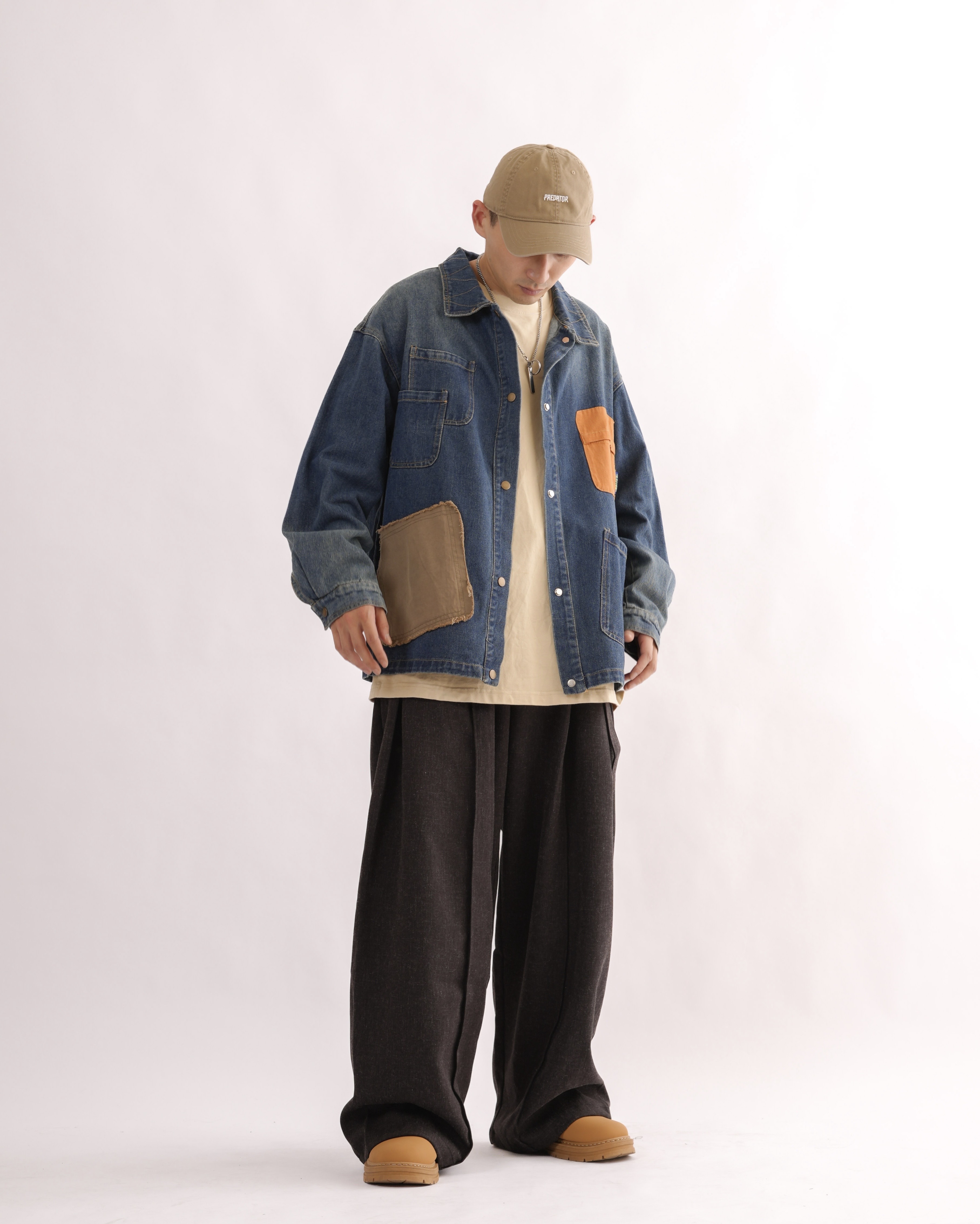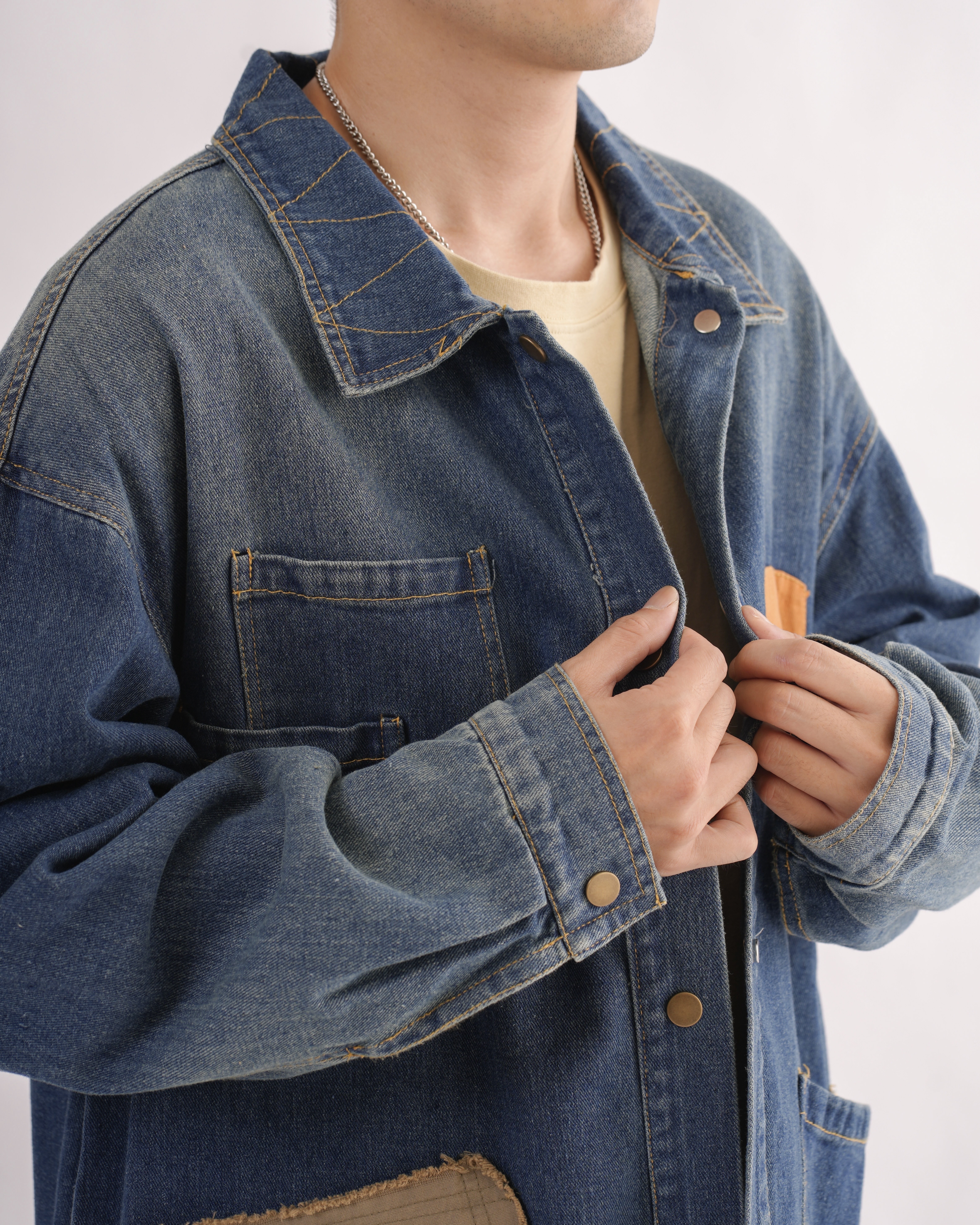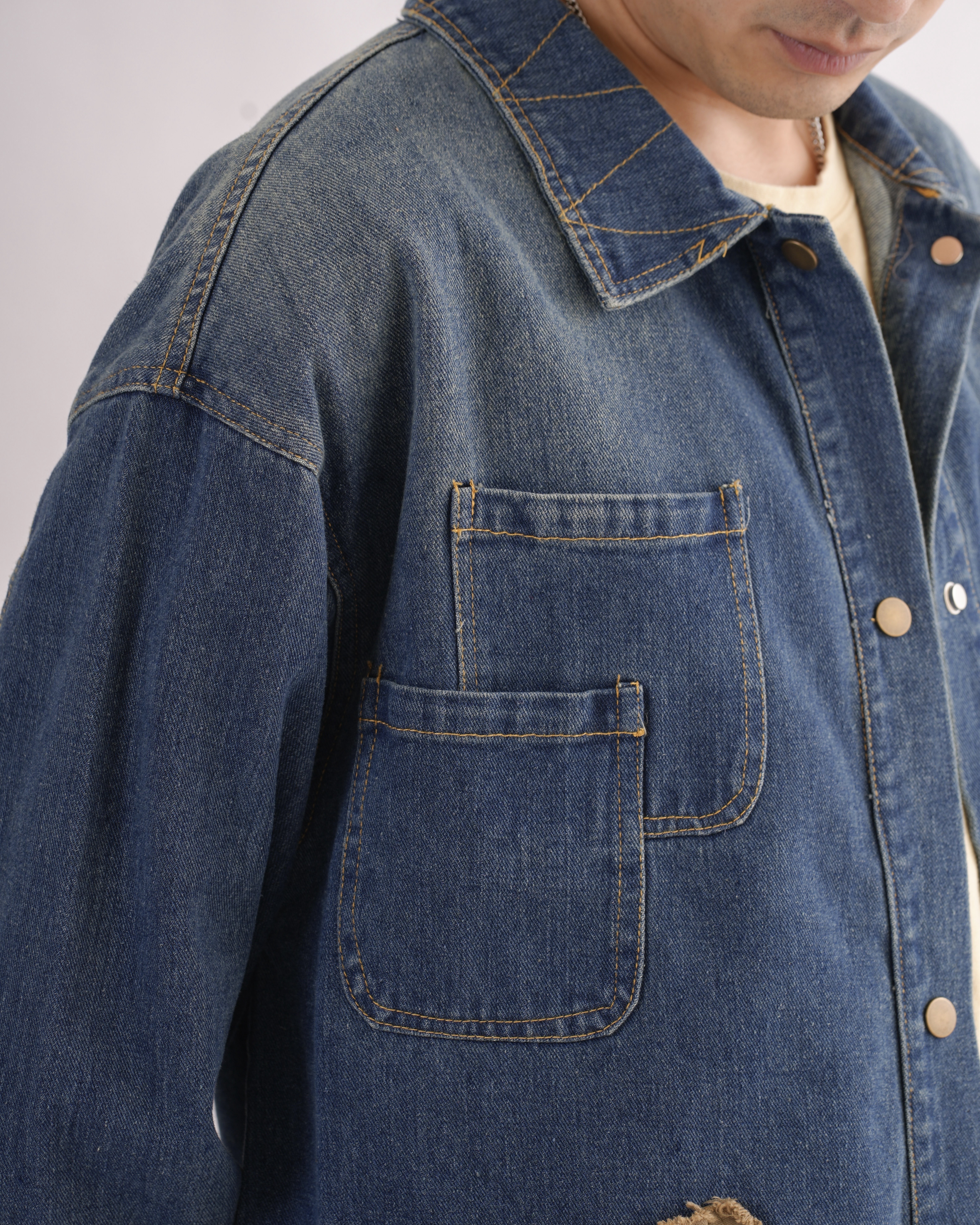 MK021 補丁感拼色水洗牛仔外套