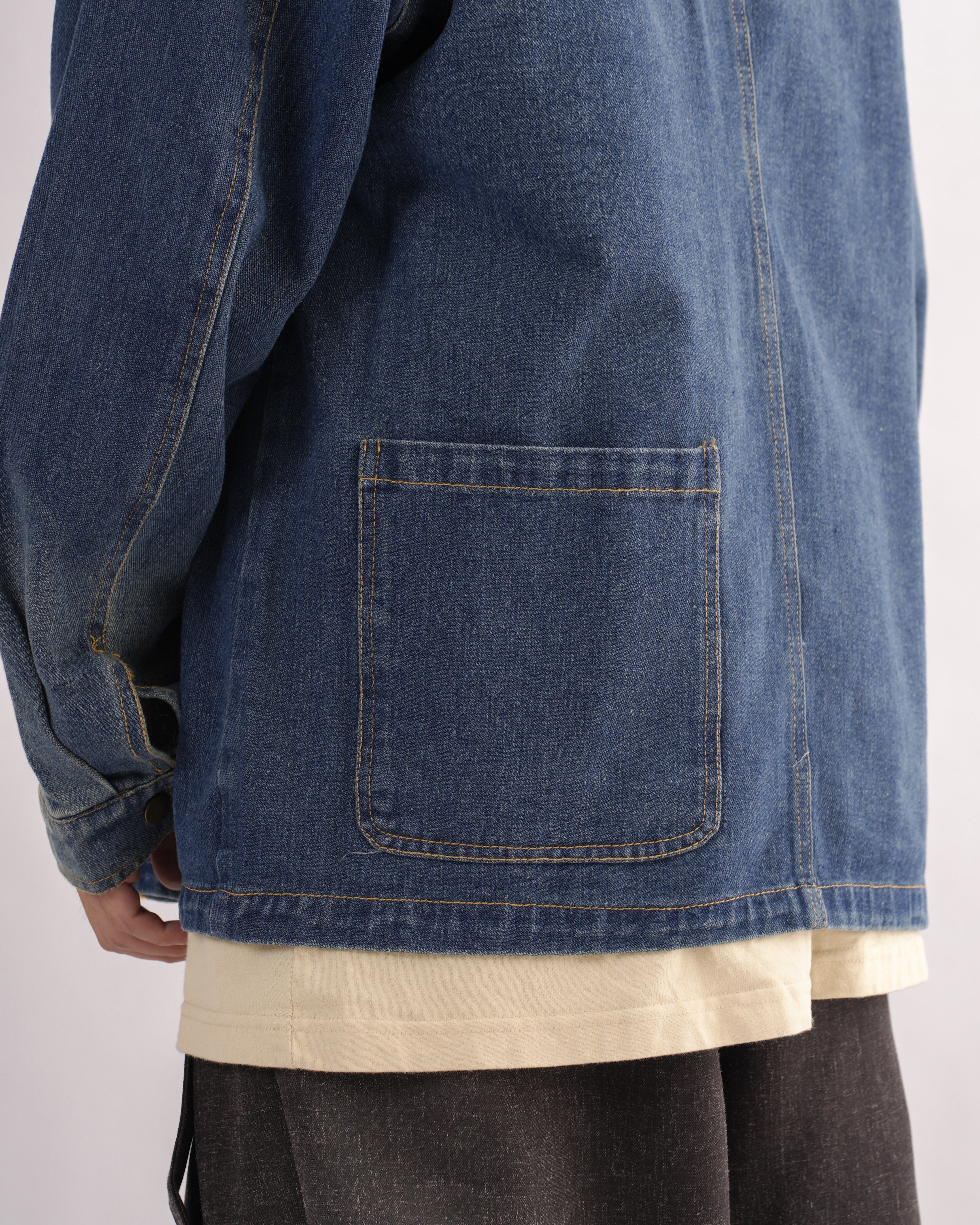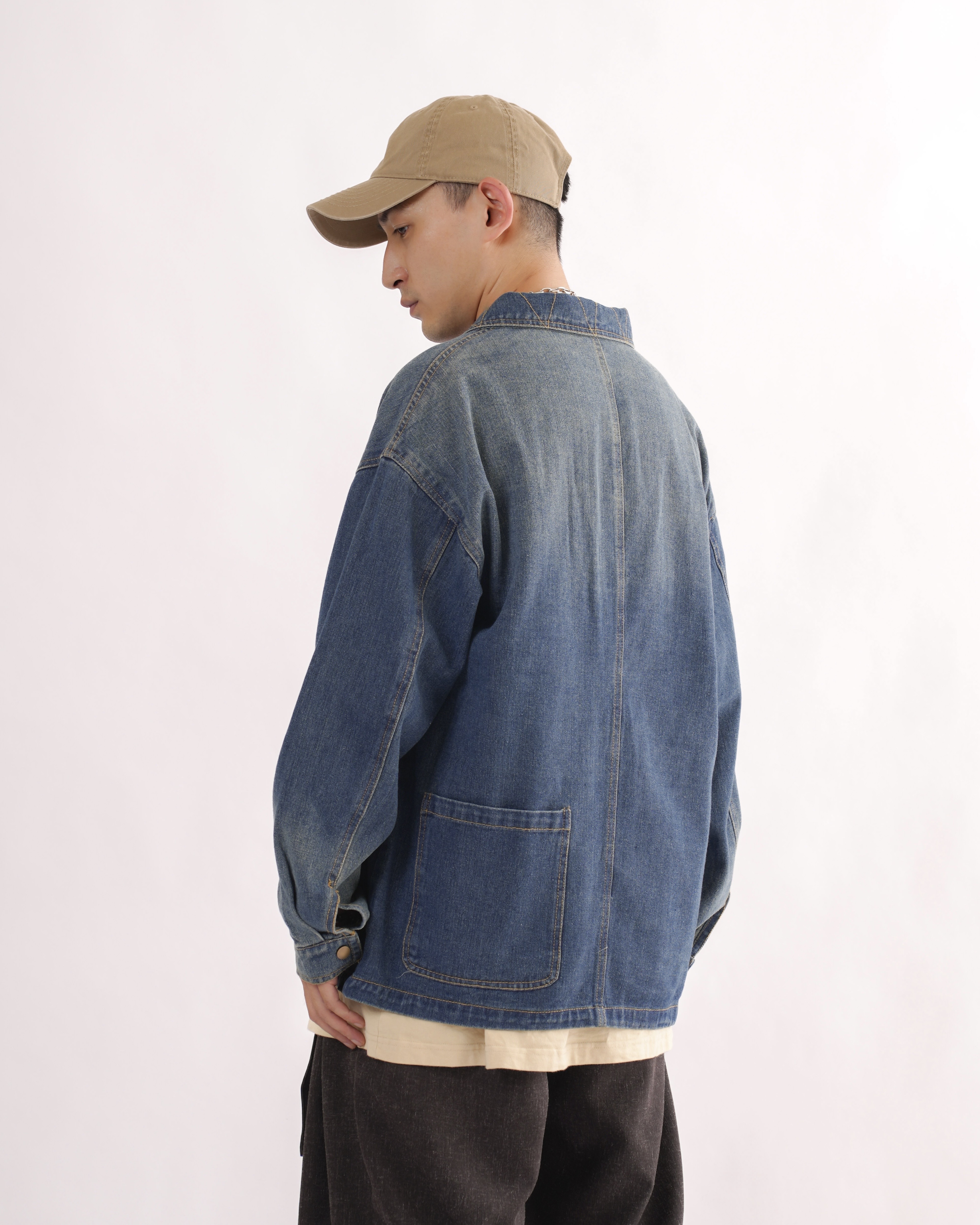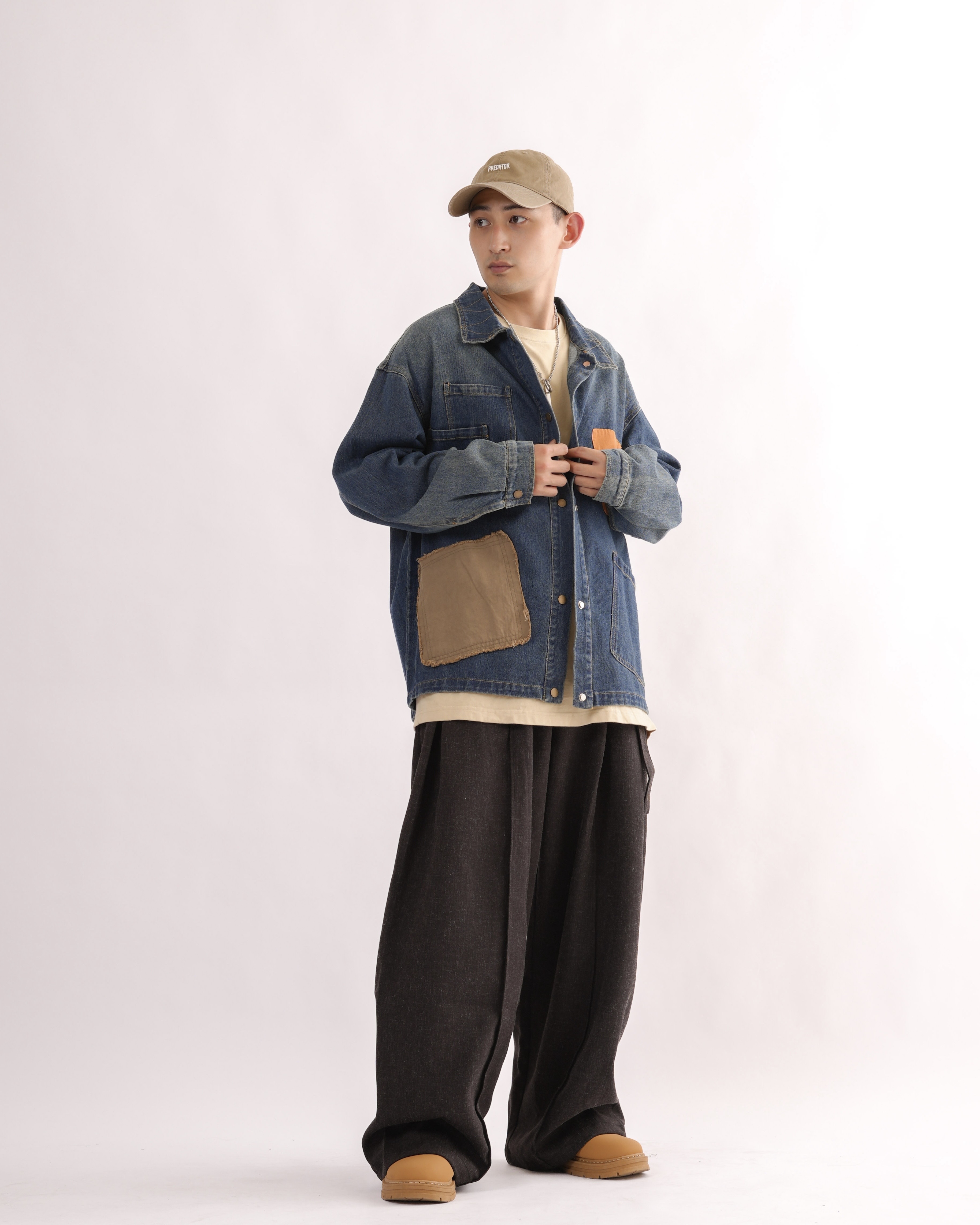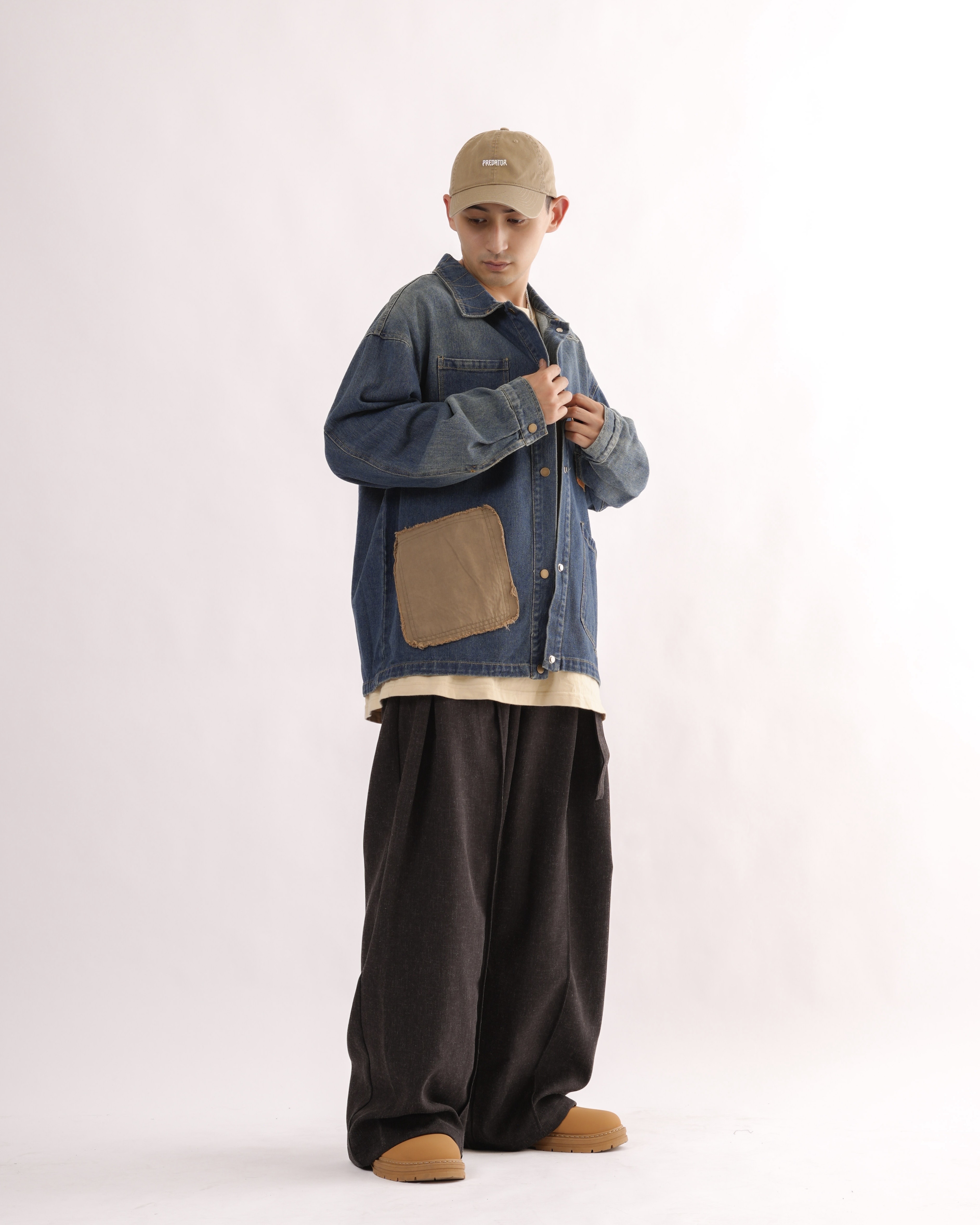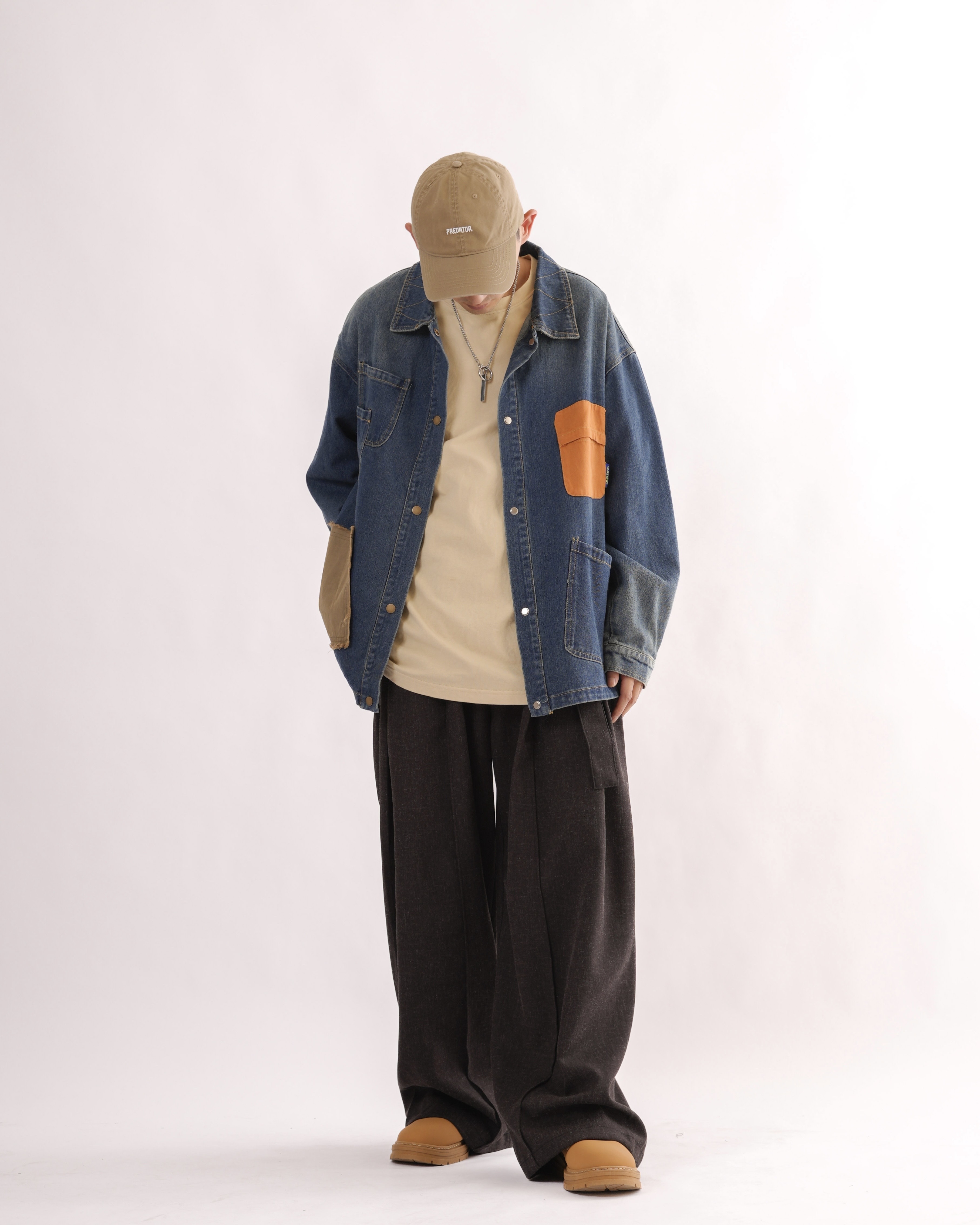 MK021 補丁感拼色水洗牛仔外套